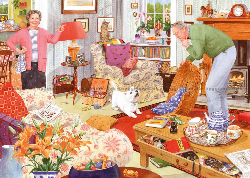 - Tracy Hall har ritat motivet. Detta pussel har större bitar. Det betyder att när motivet är lagt, så är det ungefär lika stort som ett vanligt 1000-bitars pussel.