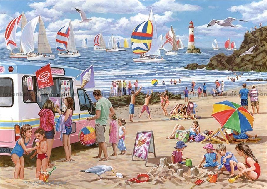 - Keith Stapleton har ritat motivet. Detta pussel har större bitar. Det betyder att när motivet är lagt, så är det ungefär lika stort som ett vanligt 1000-bitars pussel