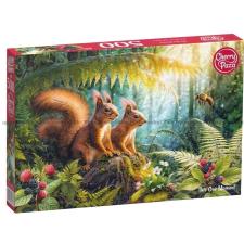 - De två ekorrarna sitter på en mossbeklädd trädstubbe