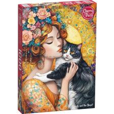 - Kvinnan håller kärleksfullt den svartvita katten i sina armar