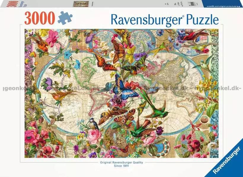 Världskarta: Blommor och fjärilar, 3000 bitar