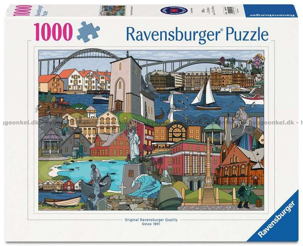 - Collage med en mängd intryck från staden. I centrum stadens imponerande kyrka