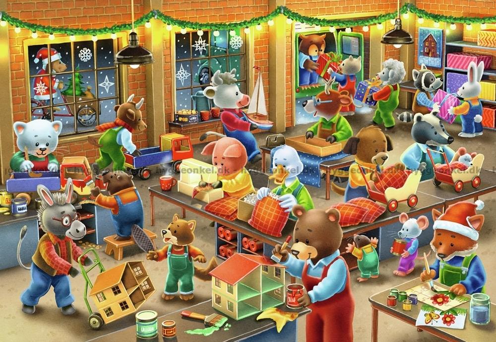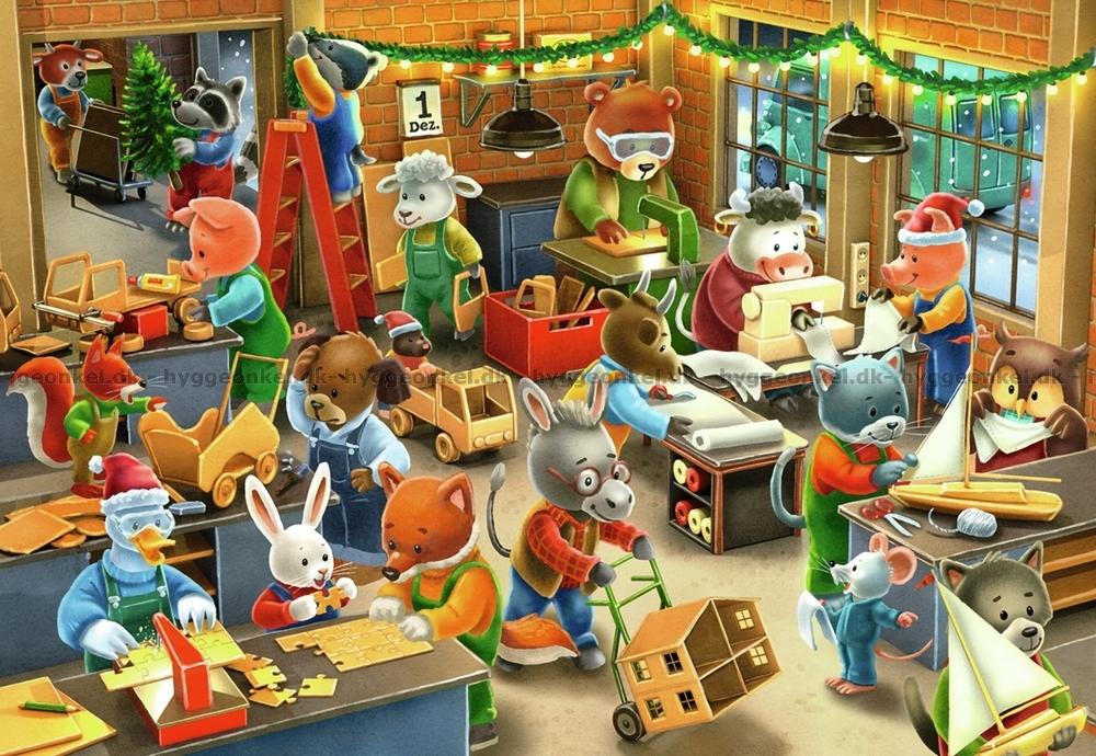 - 2 pusselspel från julverkstaden, där djuren har fullt upp med att göra julklappar