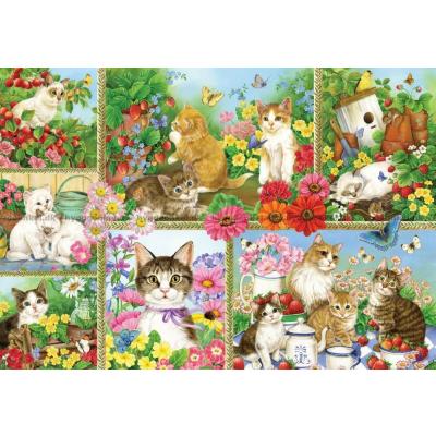 - Katterna ligger och slappar i fönsterkarmen. Fönstret står öppet ut mot den blomstrande trädgården