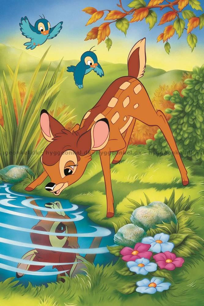 - Bambi står vid skogssjön och tittar nyfiket ner i vattnet