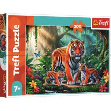 - Den lilla tigerfamiljen omgiven av färgglada blommor