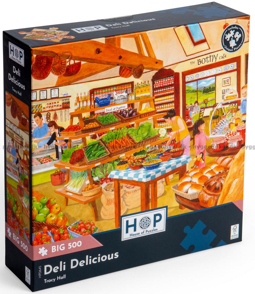 - Tracy Hall har ritat motivet. Detta pussel har större bitar. Det betyder att när motivet är lagt, täcker det ungefär samma yta som ett vanligt 1000-bitars pussel