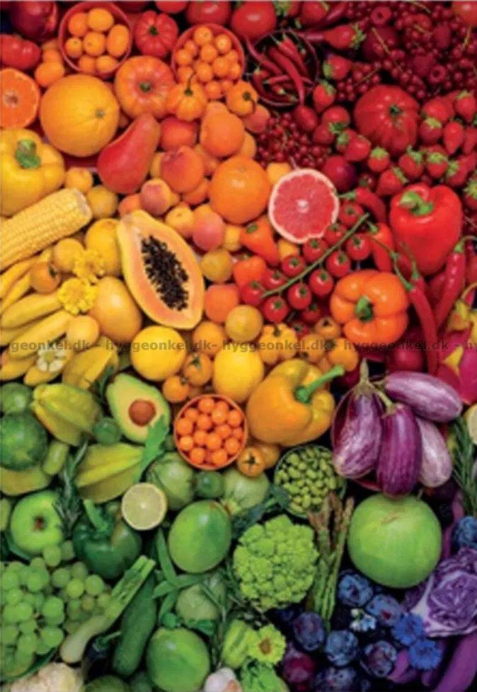- De vackra och färgglada frukterna och grönsakerna arrangerade som en regnbåge