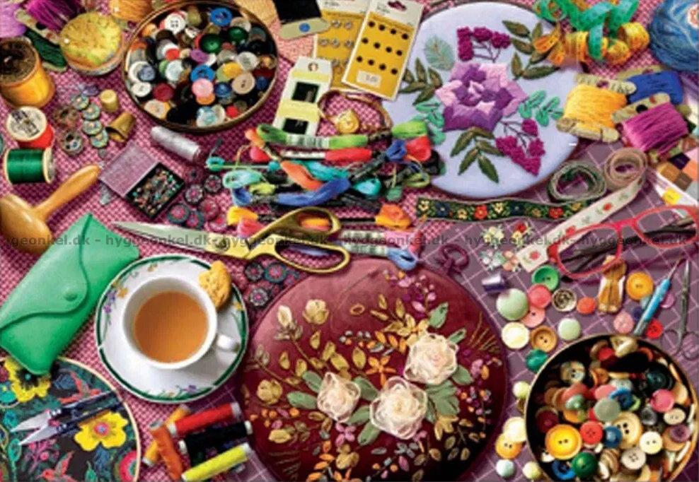 - Bordet är fyllt med allt hjärtat kan önska för sömnad och broderi