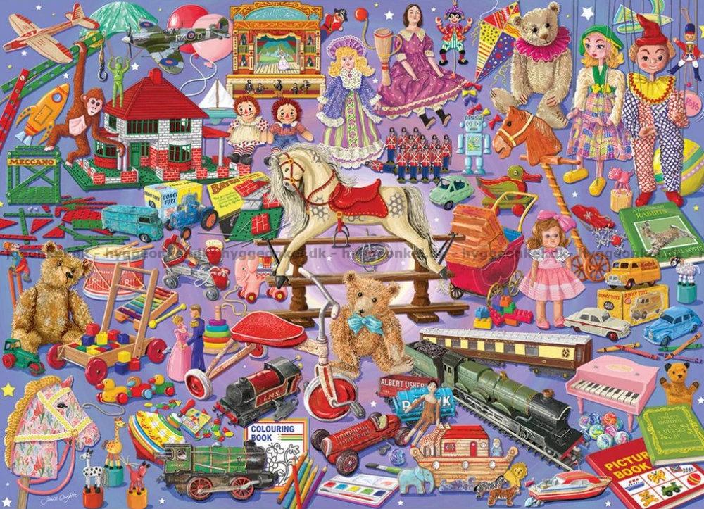 - Rummet är fyllt med nostalgiskt leksaker – allt från skallror och mjukdjur till tågbanor och bilar