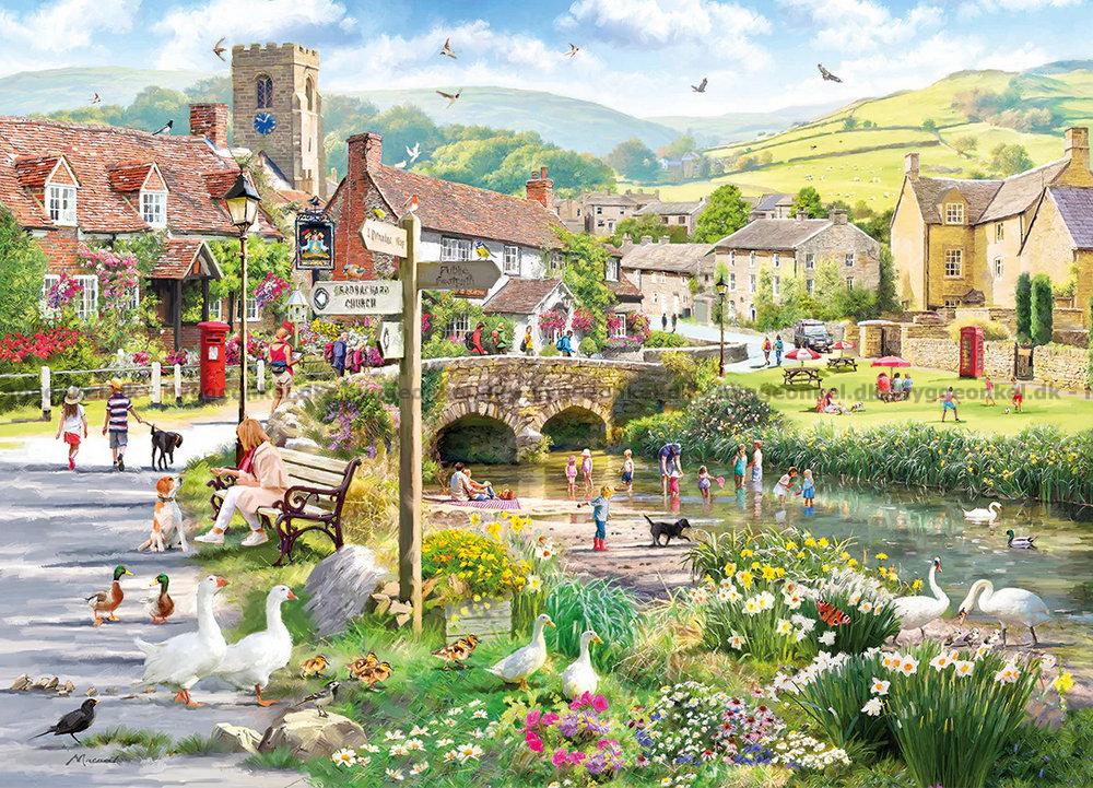 - Barnen leker vid vattenbrynet medan svanar och änder simmar fridfullt förbi