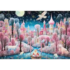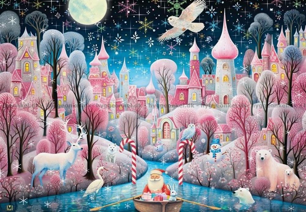 - Jultomten ror genom det sagolika julandskapet i rosa färger