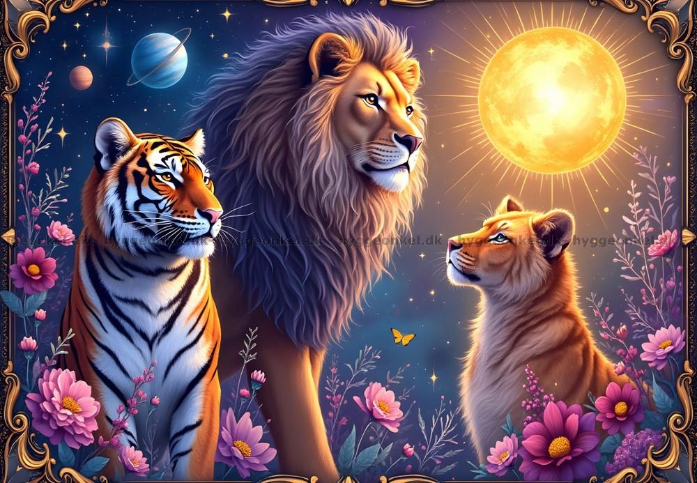 - Det majestätiska lejonet står i centrum med sin imponerande man