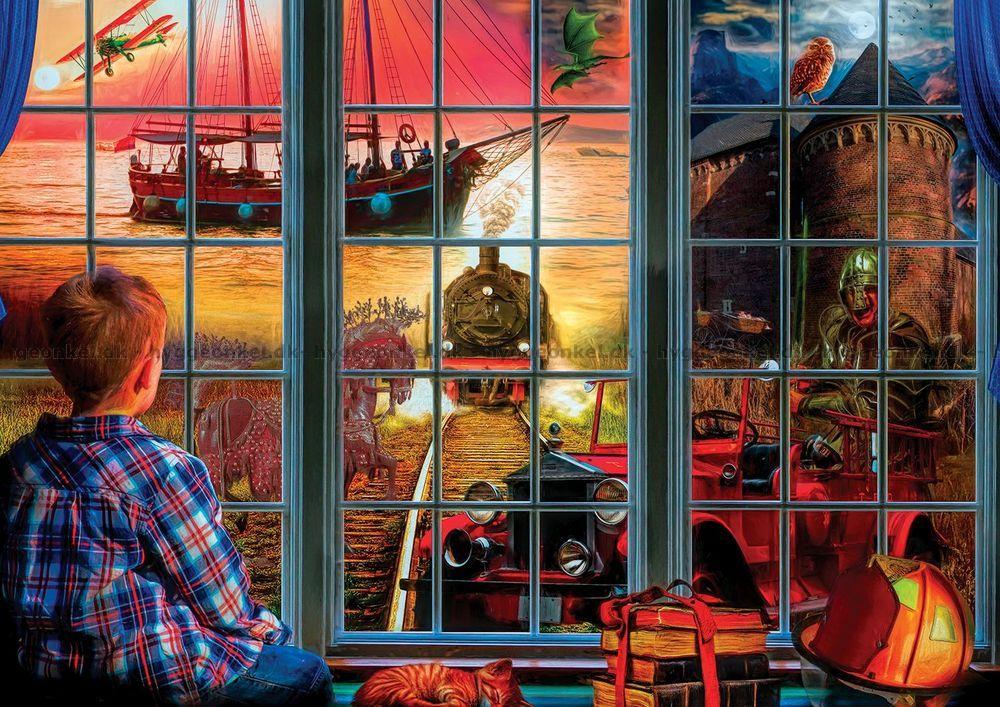 - Utanför kör ett tåg genom landskapet med den vackra medeltida borgen