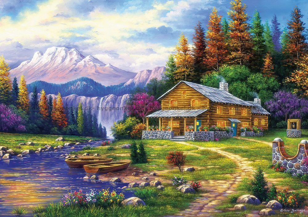 Kvällsstämning vid stugan, 1000 bitar