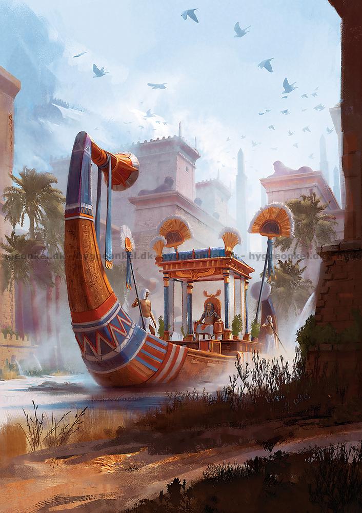 - I mitten av den storslagna båten sitter en farao under en storslagen baldakin