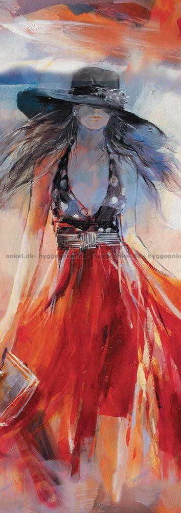 - Kvinnan går i en röd klänning som fladdrar i vinden