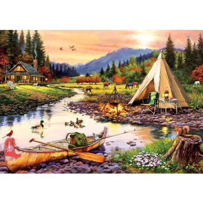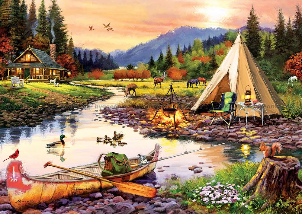 - Den idylliska lägerplatsen ligger vid den stilla floden omgiven av skog, berg och färgglada träd