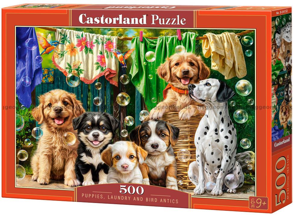 Valpar bland tvätt och såpbubblor, 500 bitar