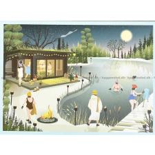 - Vid sjön njuter folk av en bastuupplevelse i vinterlandskapet