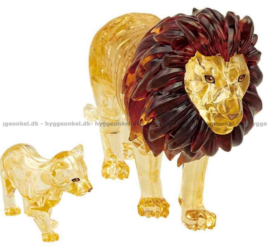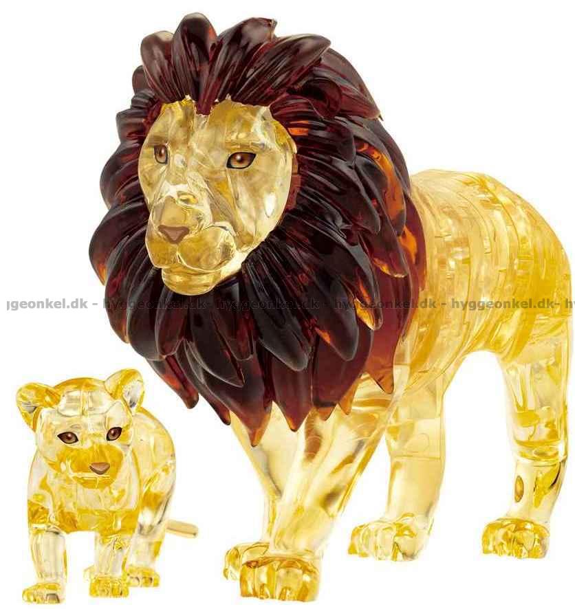 - Den majestätiska lejonfamiljen samlad. Det stora lejonet står stolt bredvid en mindre lejonunge. Det stora lejonet har en imponerande man. Lejonungen utstrålar nyfikenhet och energi