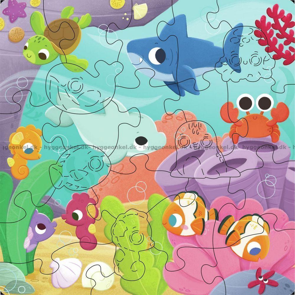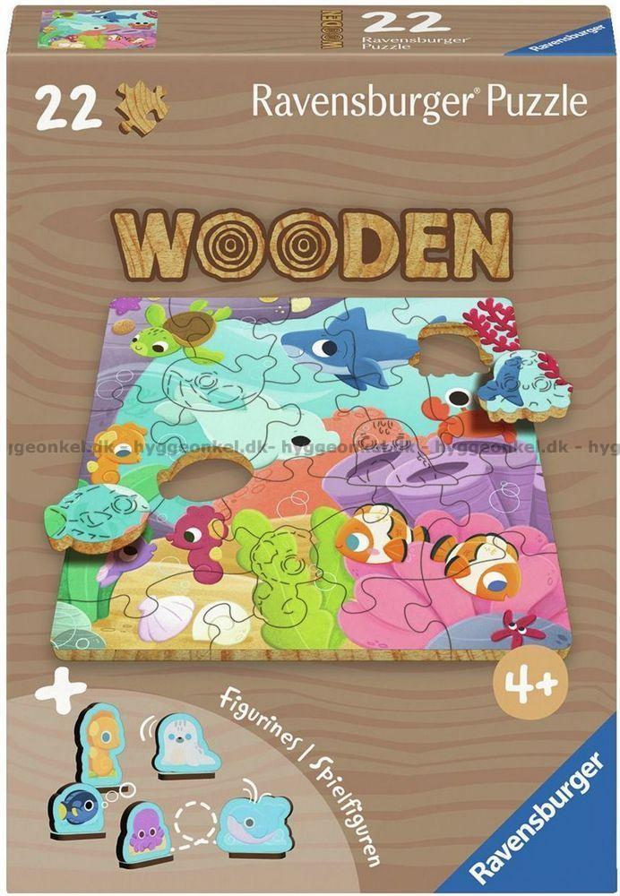Havets djur - Träpussel, 22 bitar