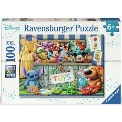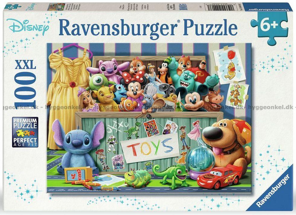 - Färgstark samling av kända Disney Pixar-figurer som har samlats runt en leksakslåda. Möt bland annat McQueen och Stitch