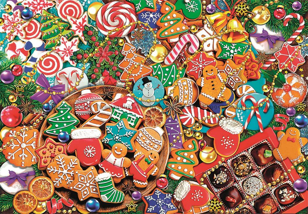 - Färgglad samling av julgodis och dekorerade småkakor formade som julgranar, stjärnor och hjärtan