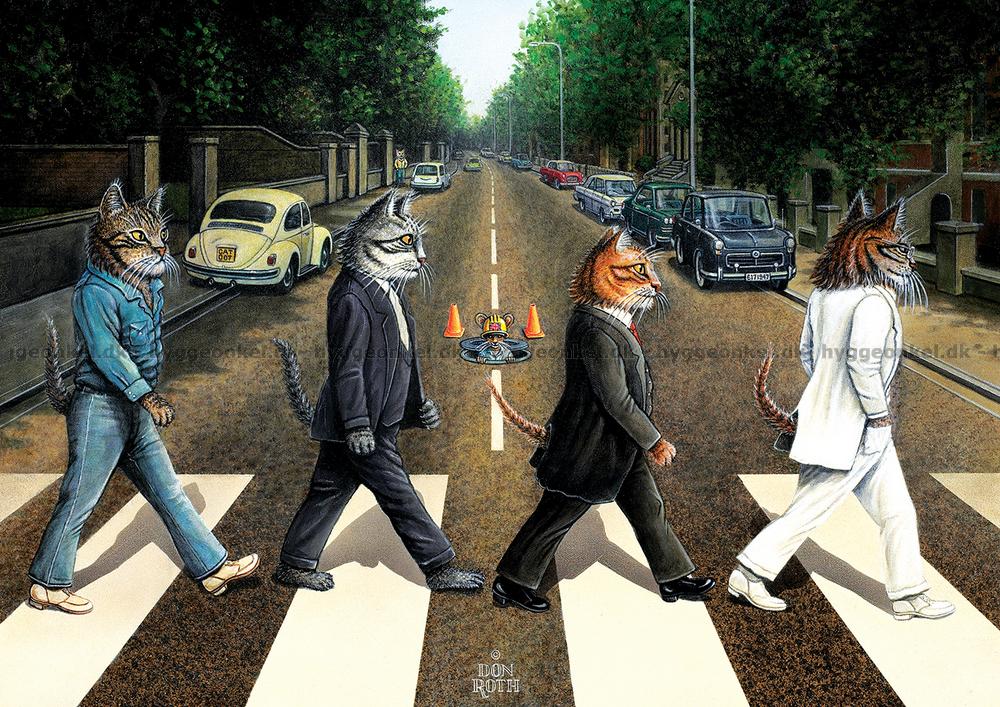 - De 4 katterna korsar övergångsstället iförda kostymer