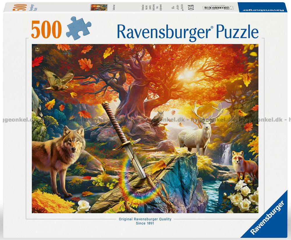 - Svärdet står fast förankrat i klippan omgiven av en magisk skog i höstfärger