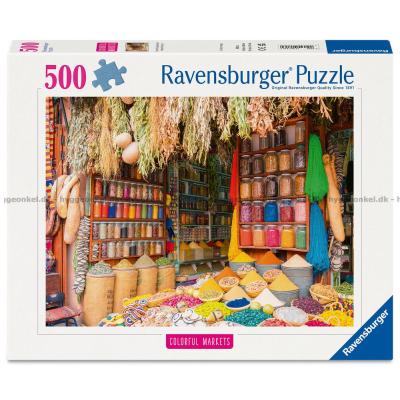 - Den färgglada marknaden är fylld med kryddor och torkade örter. Hyllorna är fyllda med burkar och stora säckar står på rad och rad på golvet