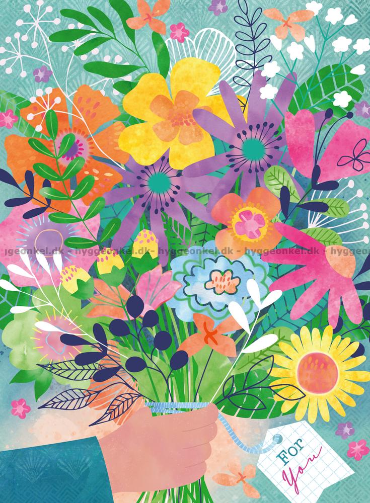- Handen räcker fram buketten tillsammans med kortet, där det står att buketten är till dig