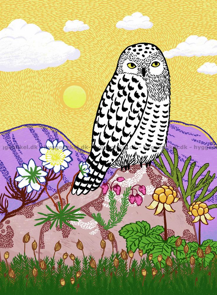 - Den stora, vita ugglan med svarta fläckar sitter majestätiskt på en klippa