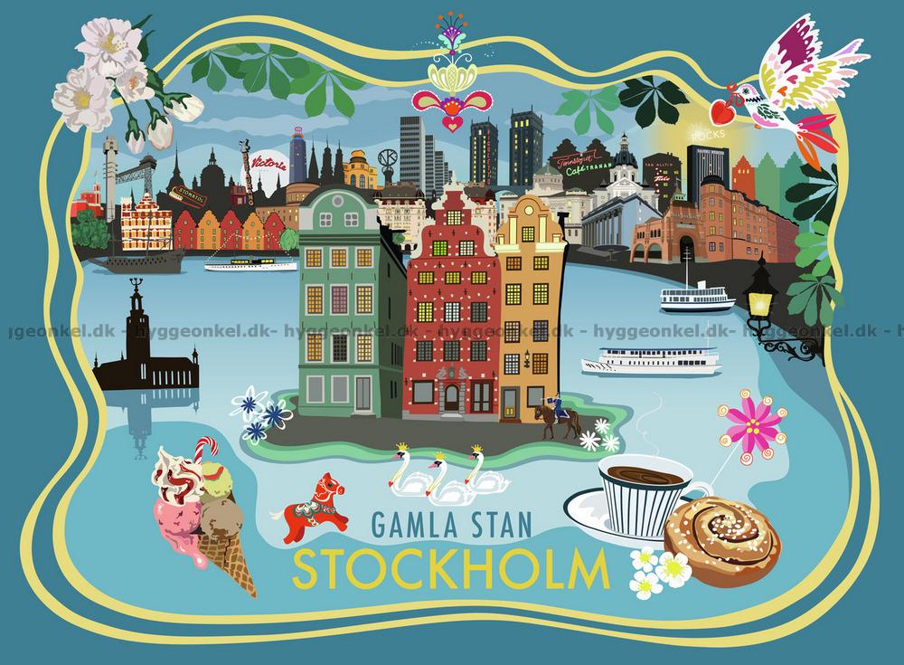 - Färgstark skildring av Gamla Stan och stadens ikoniska byggnader