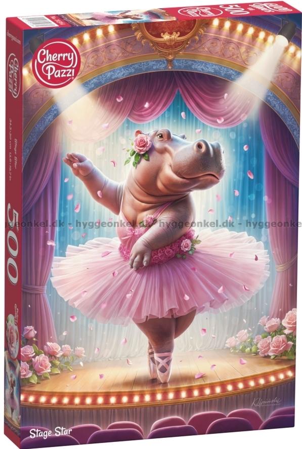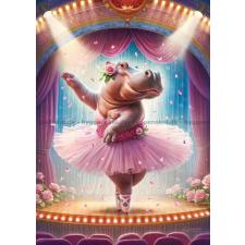 - Den charmiga flodhästen iförd en rosa tutu står på en scen