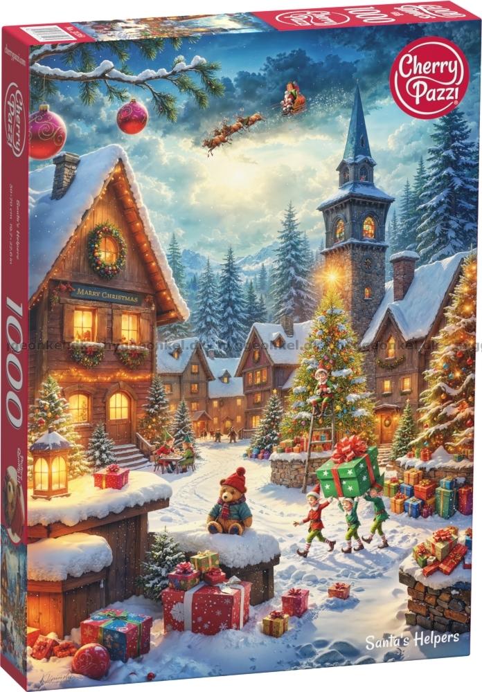 - En idyllisk julstad är täckt av snö, där tomtarna är upptagna med att förbereda gåvor
