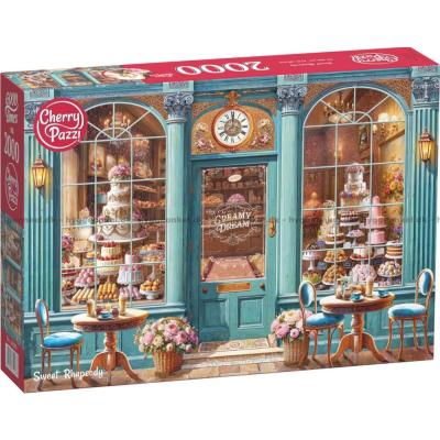 - Den inbjudande fasaden av ett konditori med ett överflöd av bakverk och sötsaker i fönstren