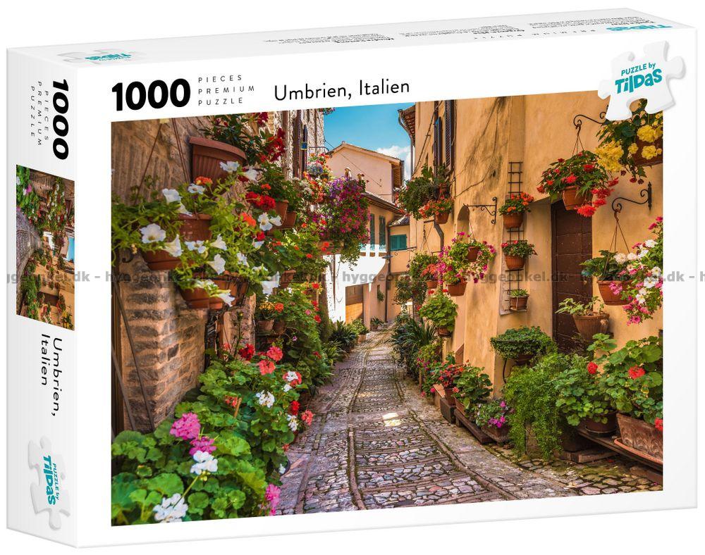 - Den smala, kullerstensbelagda gatan slingrar sig genom den charmiga staden. Färgglada blommor i krukor pryder båda sidor av gatan