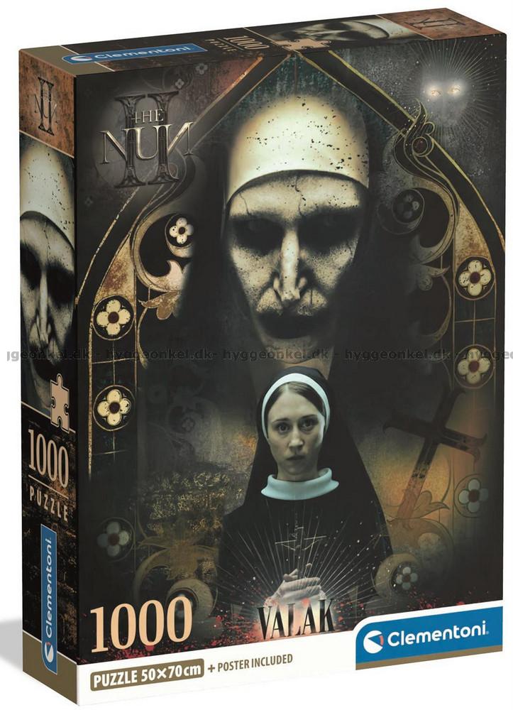 - Demonnunnan Valak står med det skrämmande, mörka uttrycket omgiven av religiösa symboler