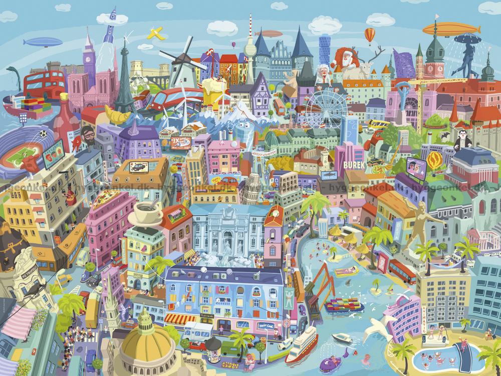 - Byggnader och monument från olika länder är samlade i ett färgstarkt porträtt av världsdelen