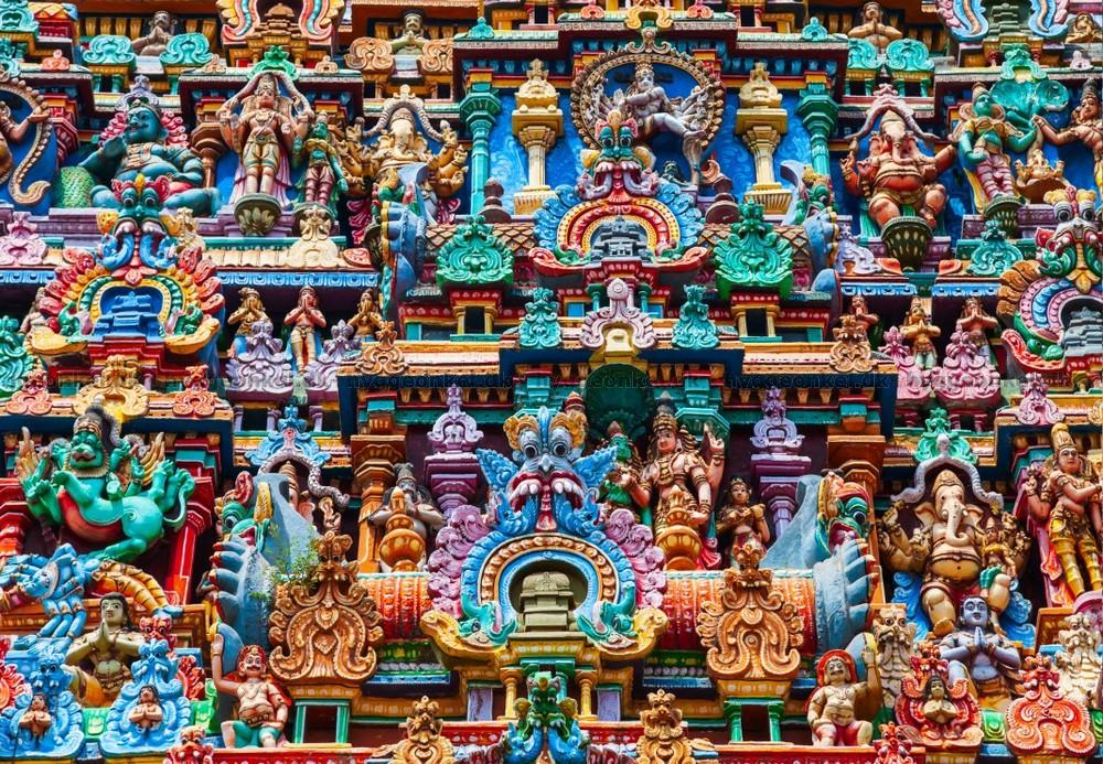 - En spännande, färgstark fasad från ett hinduiskt tempel