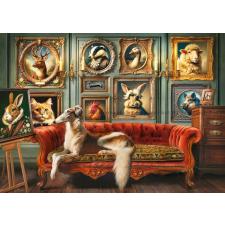 - På de gröna väggarna hänger en rad porträtt av djur i vackert utsmyckade ramar