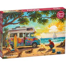 - Husbilen är parkerad på stranden medan solen går ner över havet