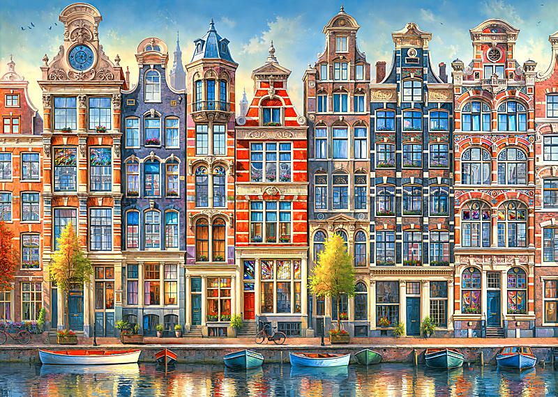Amsterdam: Färgglada hus vid kanalen, 1000 bitar