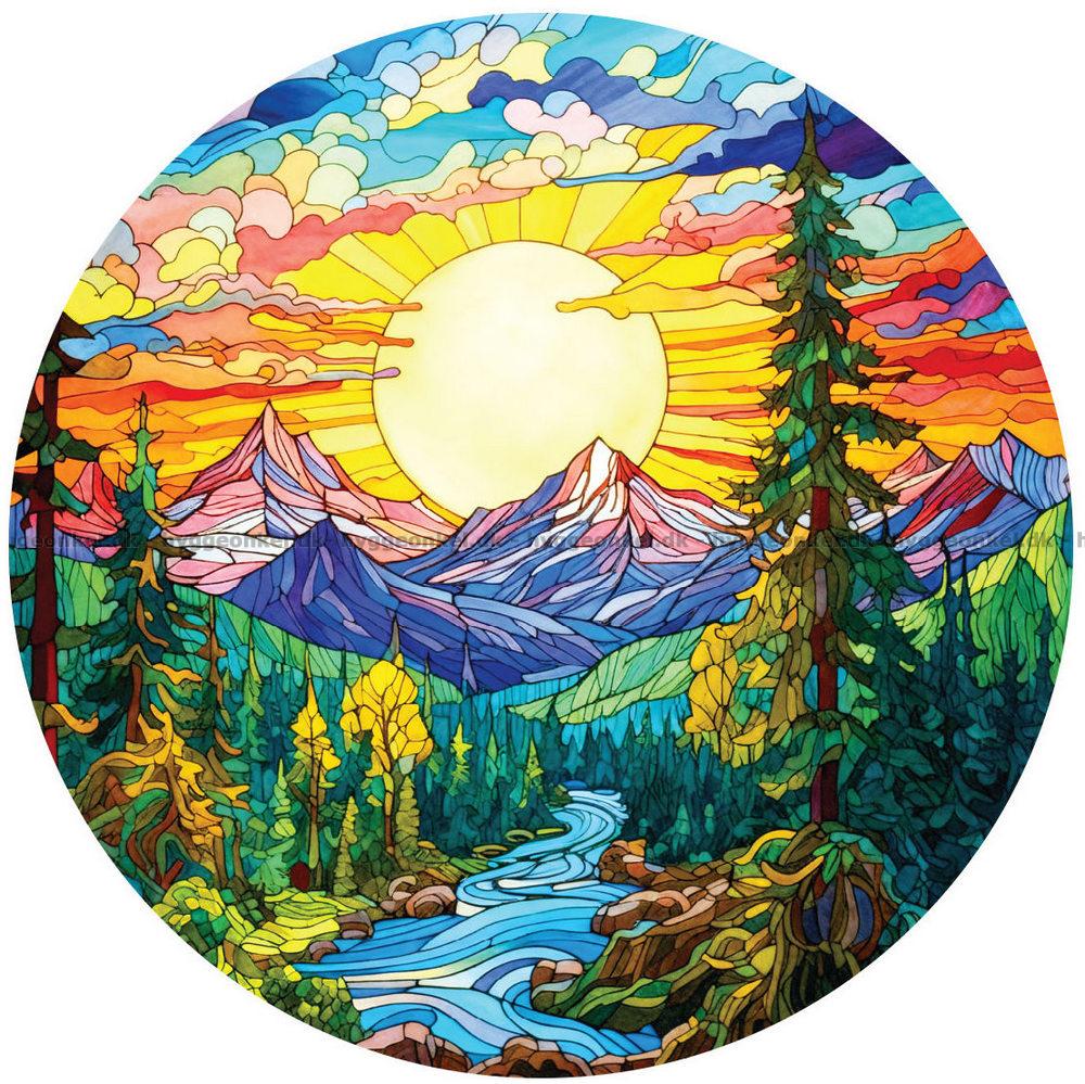 Soluppgång i bergen - Runt pussel, 570 bitar