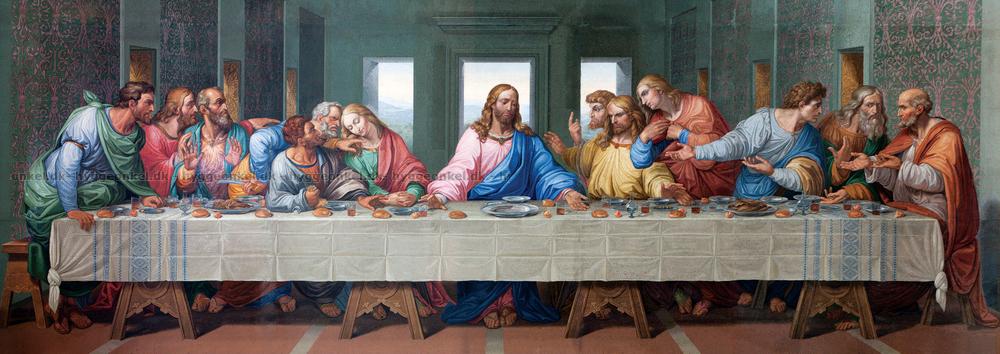 - Motiv från Bibeln, där Jesus tillsammans med sina lärjungar delar den sista måltiden