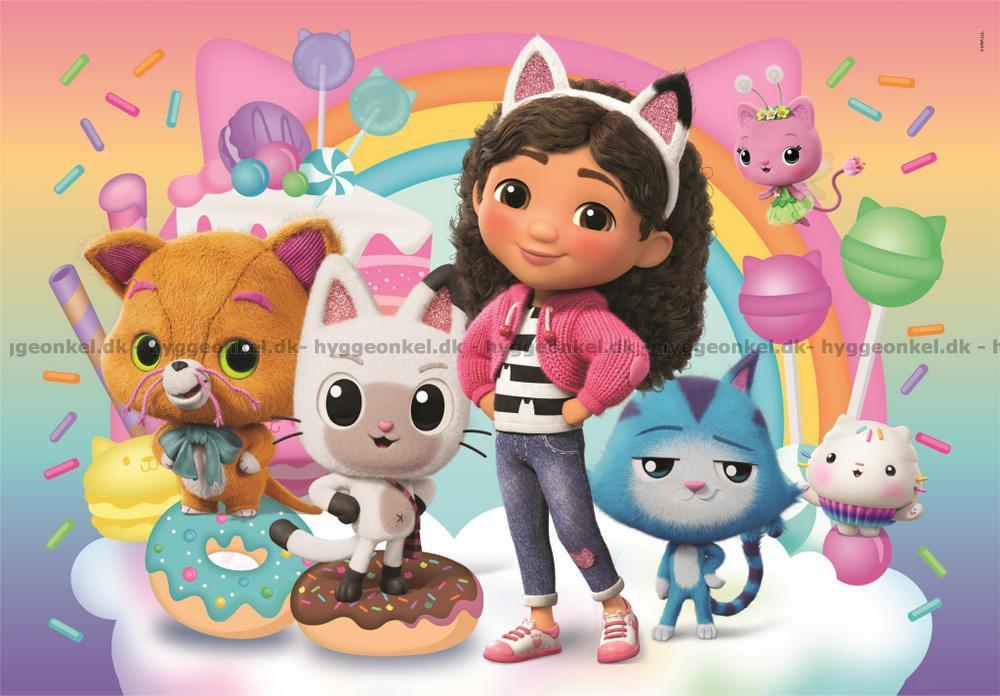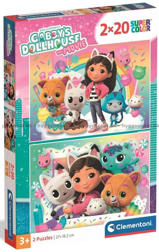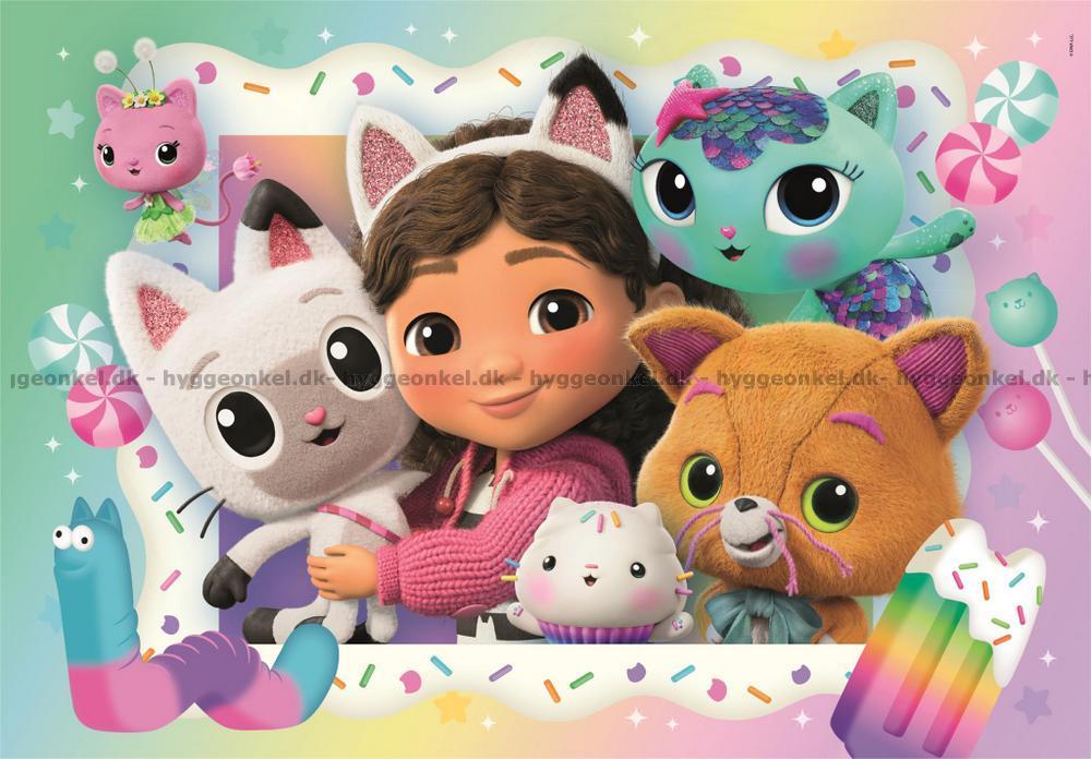 - 2 olika pussel med 20 bitar vardera samlade i en ask. Här är motiven med de härliga katterna tillsammans med underbara Gabby