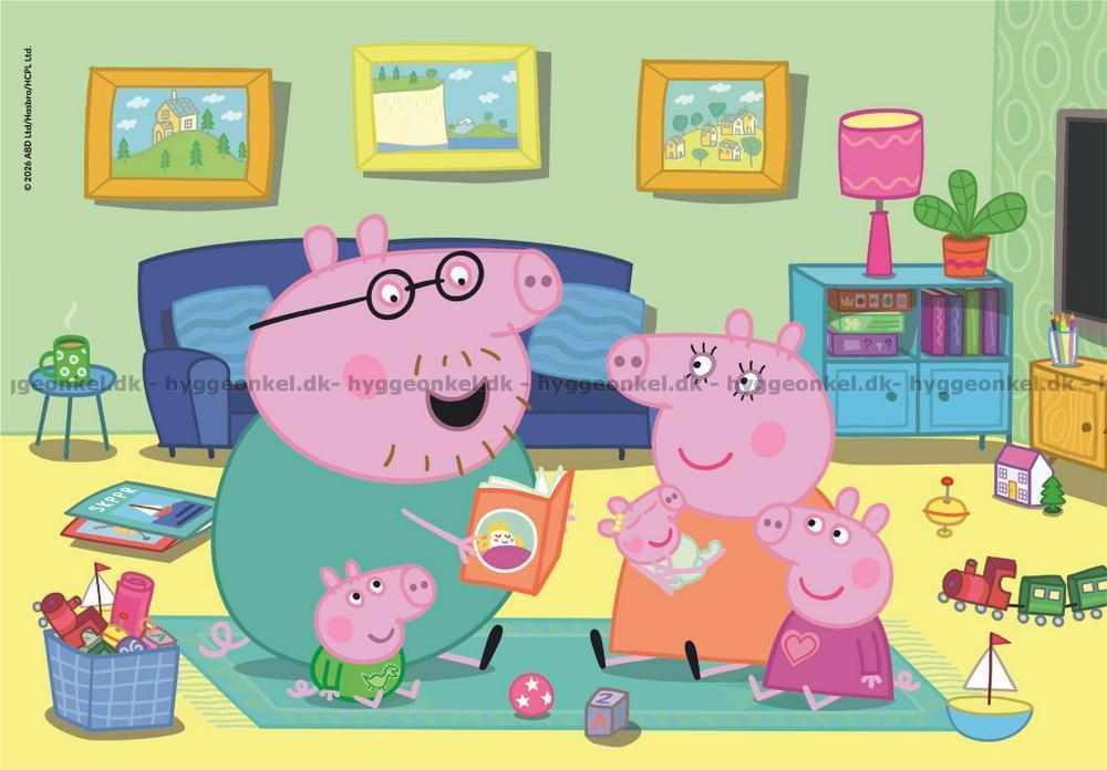 - Familjen Gris har det mysigt. Pappa läser en bra saga