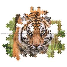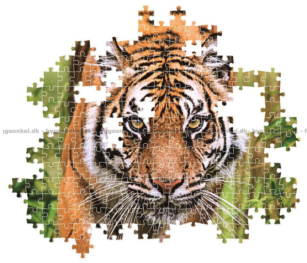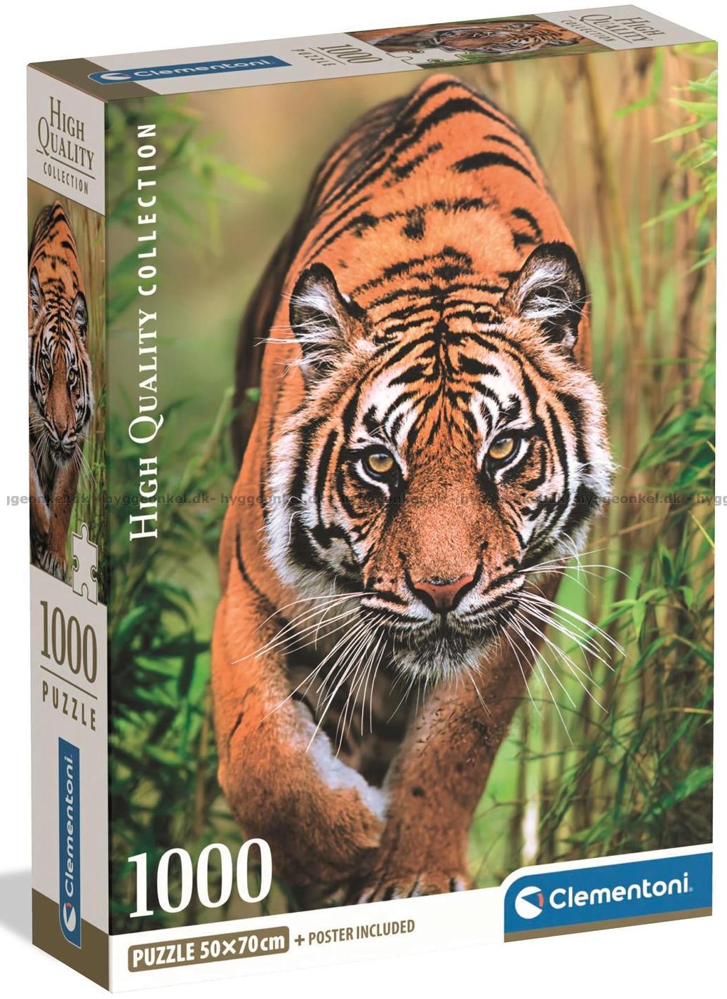 - Tigern stirrar intensivt framåt, men den rör sig genom gräset