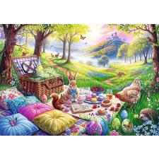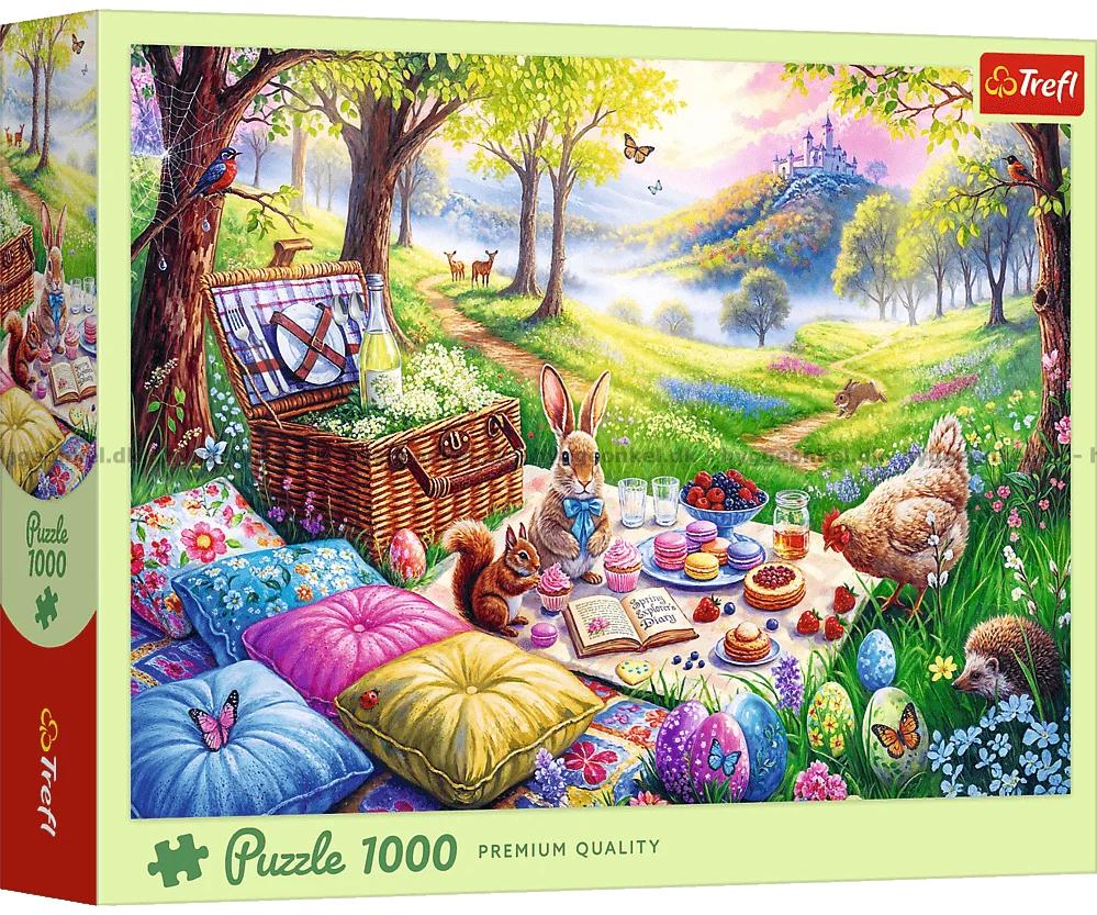 - De är omgivna av färgglada kuddar och vackert dekorerade påskägg